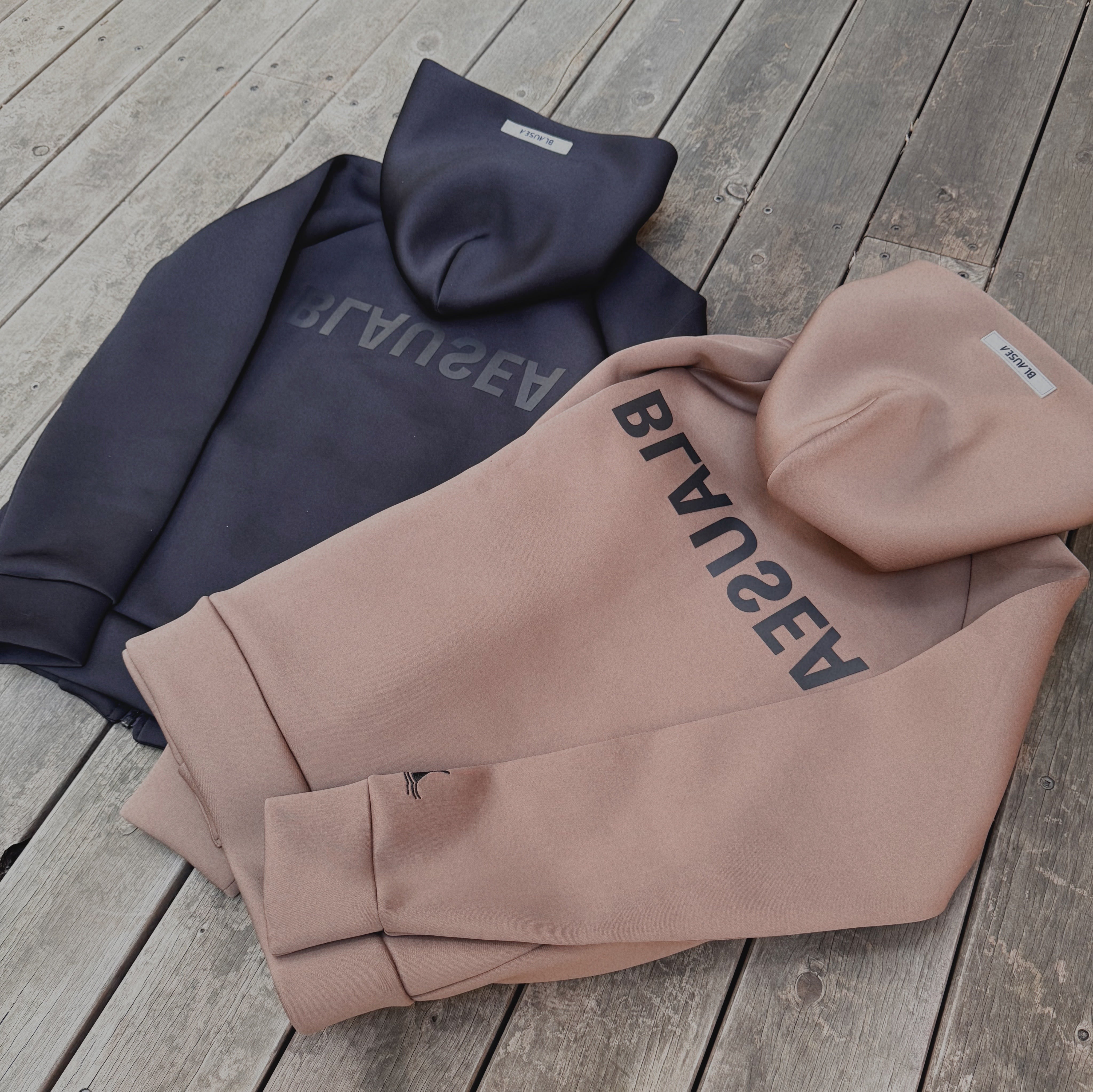 一般的なスウェットとは違った伸縮性のある素材のボンディング(ダンボール)生地を使用することで、適度なハリと柔らかさを実現。