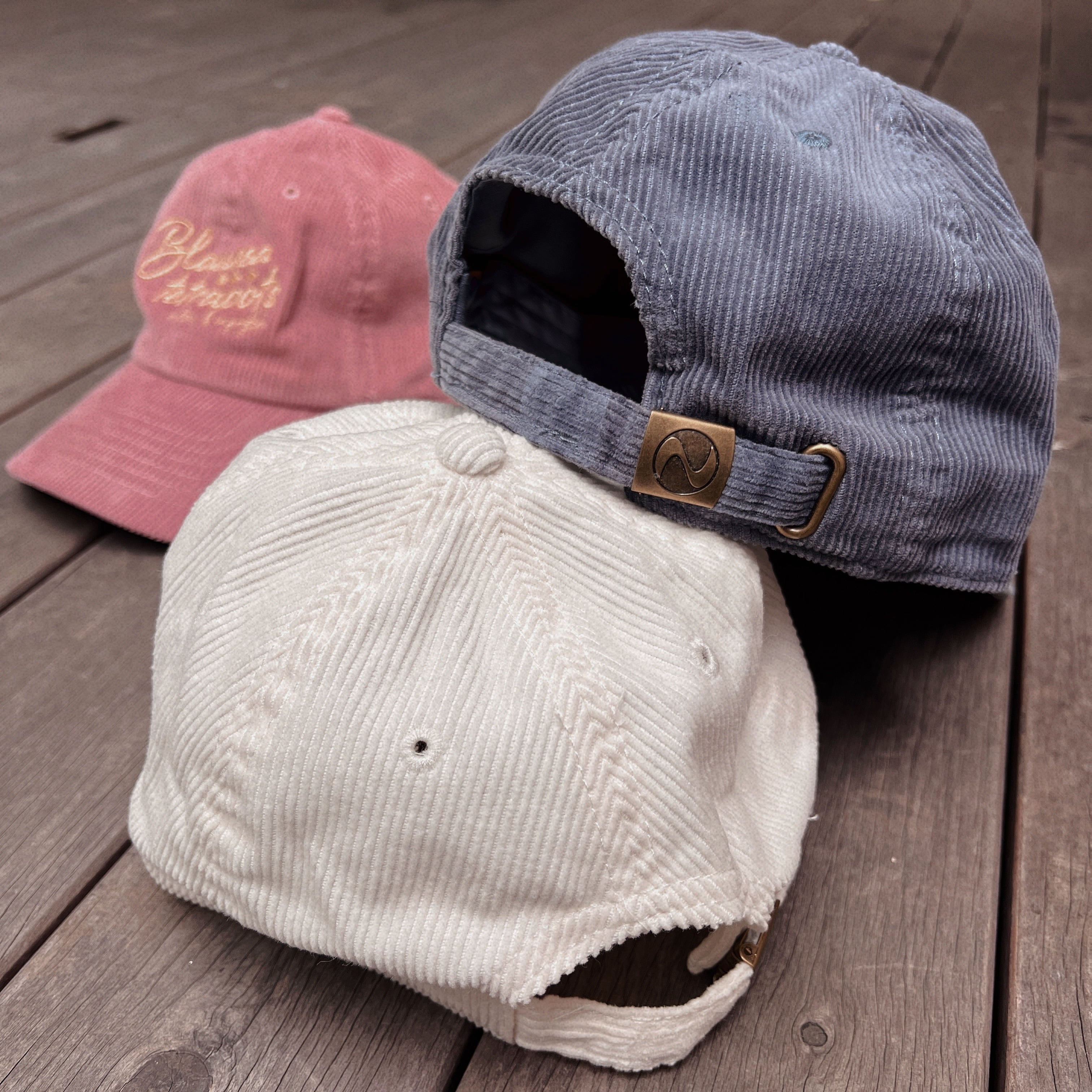 温かみのあるコーデュロイキャップに刺繍であしらったコラボロゴはさりげなく存在感を出してくれる。